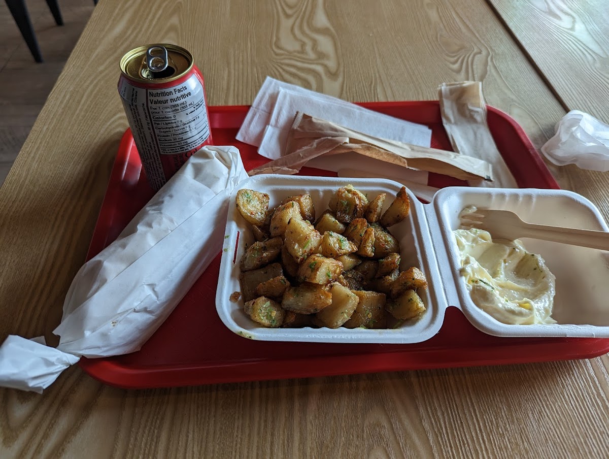 O Tawouk also fills out the meal with a variety of sides and sauces like hummus, garlic sauce, and a mildly spicy hot sauce, which let you customize according to your taste. Drinks are mostly familiar soft drink options, complementing the comfort-food feel of the place.